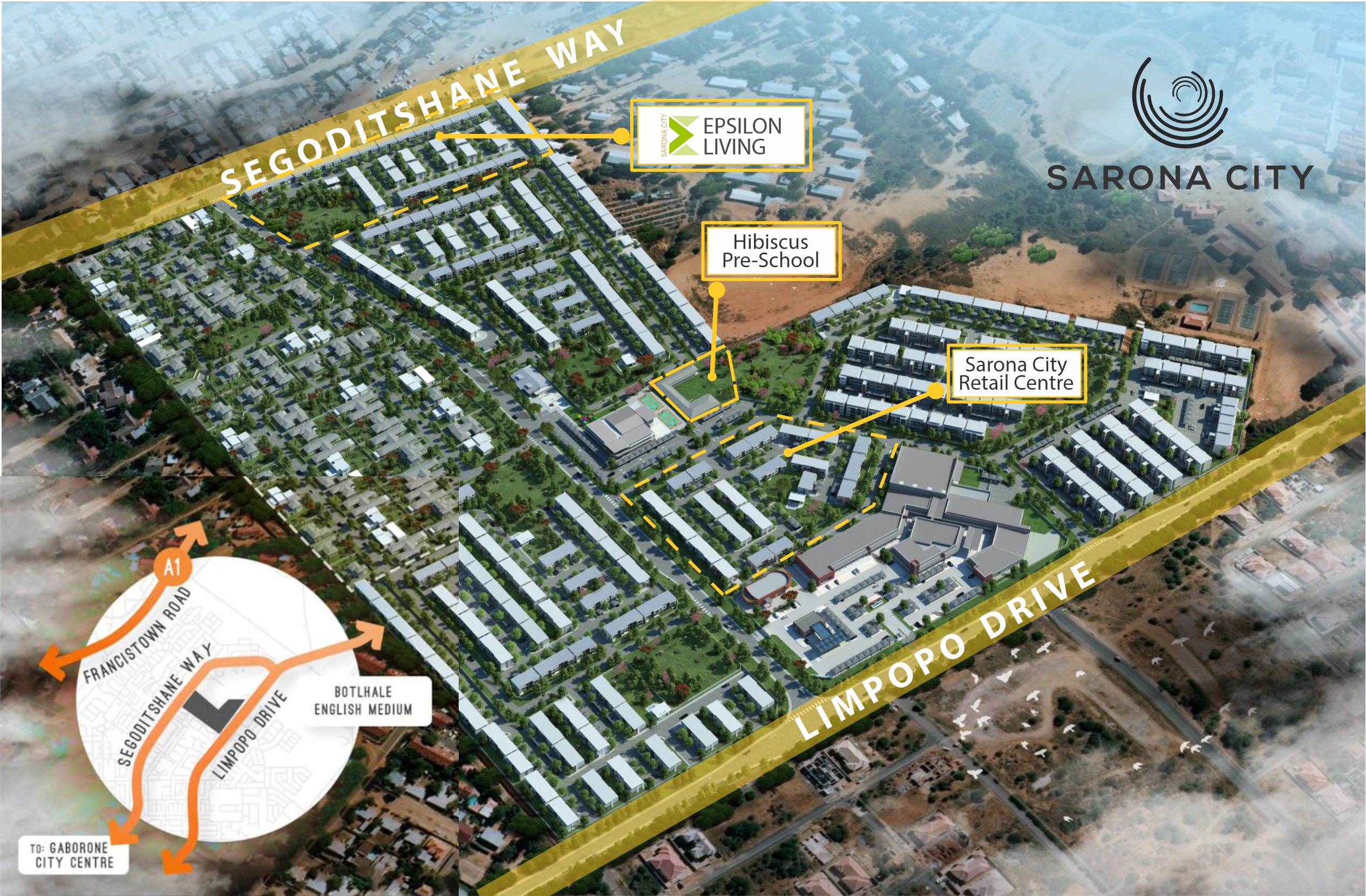 Located on the edge of Sarona City on Plot 75955 in Tsholofelo East, Gaborone, Epsilon Living is ideally situated in the heart of Gaborone. Enjoy a city within a city lifestyle!